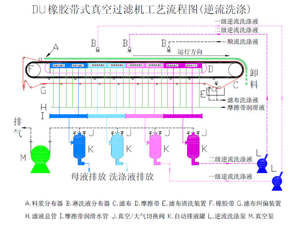 橡膠帶式真空過(guò)濾機(jī)是以濾布作為過(guò)濾介質(zhì),依靠真空負(fù)壓力實(shí)現(xiàn)固液分離的高效分離設(shè)備,該設(shè)備結(jié)構(gòu)簡(jiǎn)單,制作和運(yùn)行成本低,易維護(hù)和操作。生產(chǎn)過(guò)程全自動(dòng)運(yùn)行,可根據(jù)生產(chǎn)需要自由調(diào)整運(yùn)行速度、進(jìn)料量、洗滌水量。橡膠帶式真空過(guò)濾機(jī)經(jīng)過(guò)多年的發(fā)展,技術(shù)已達(dá)到國(guó)際先進(jìn)水平,廣泛應(yīng)用于電力環(huán)保、礦山、化工、冶金、造紙、食品、制藥及煤炭等行業(yè)。